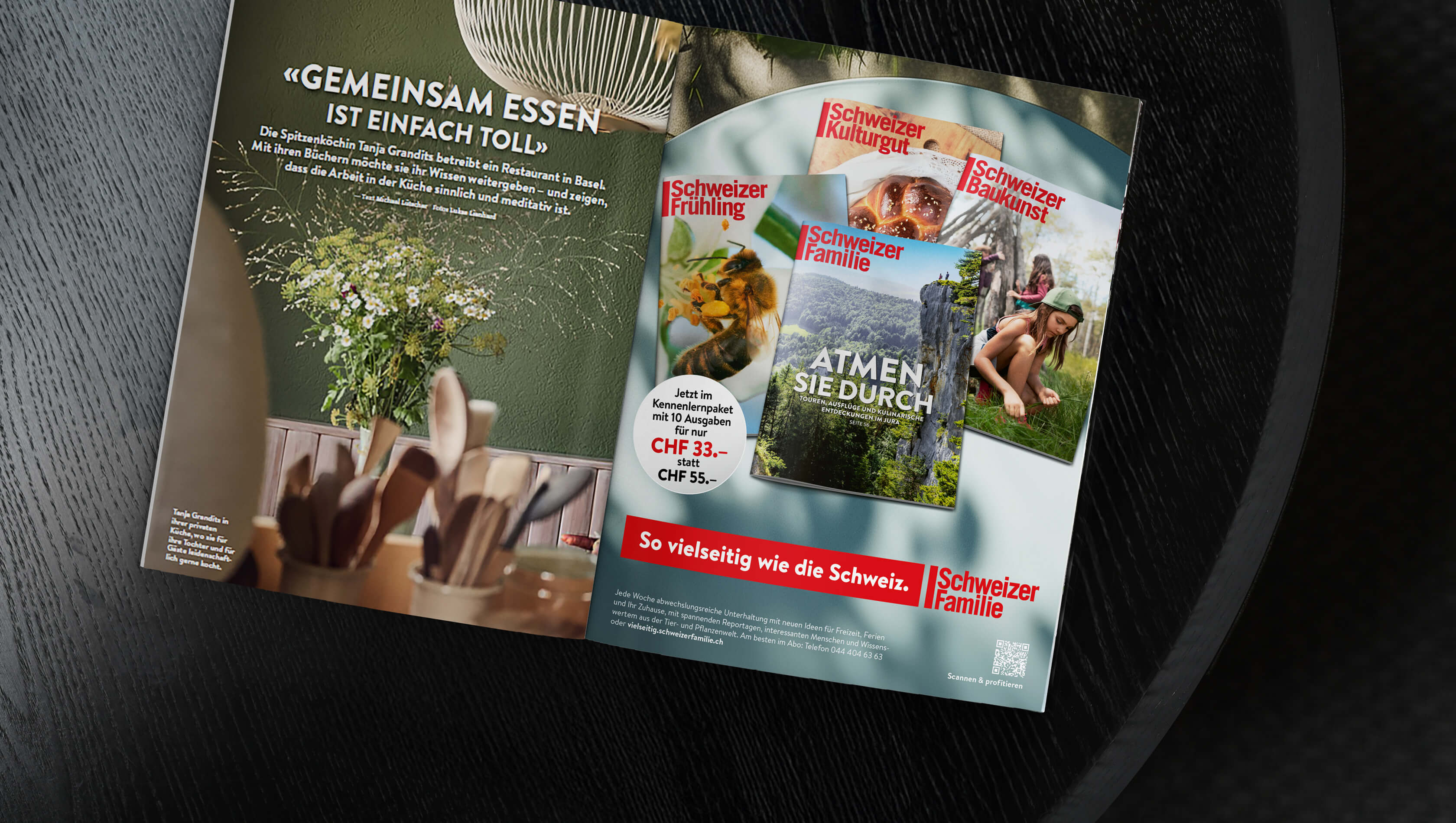 Um auf die grosse Themenvielfalt aufmerksam zu machen, positioniert sich die «Schweizer Familie» mit der neuen Kampagne nicht einfach nur als «Schweizer Familie», sondern über den vielfältigen Inhalt als «Schweizer Frühling», «Schweizer Balance», «Schweizer Superfood», «Schweizer Kulturgut» und vielen neuen Titelgeschichten mehr.